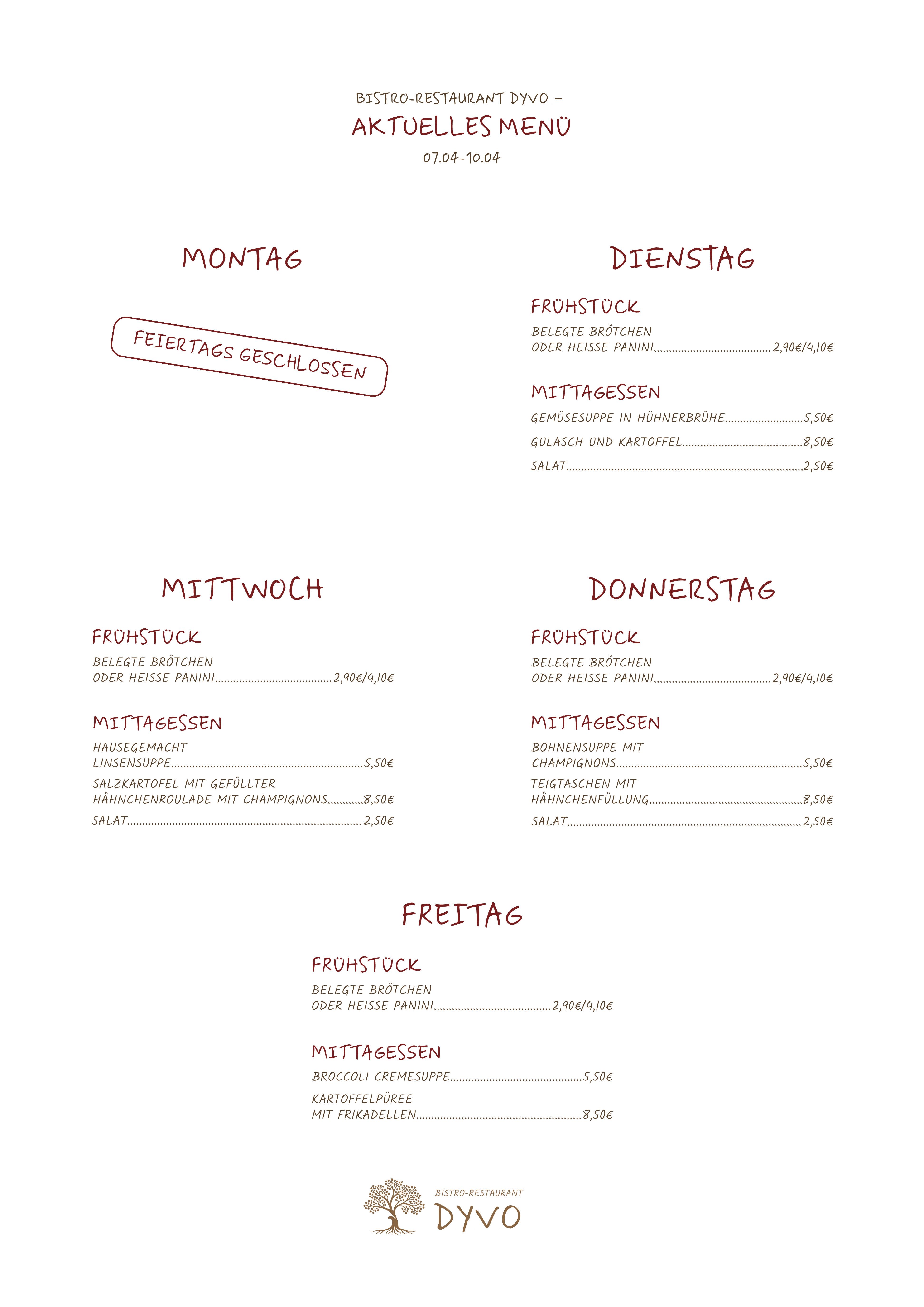 Mittagstisch von 11:00 Uhr bis 14:00 Uhr